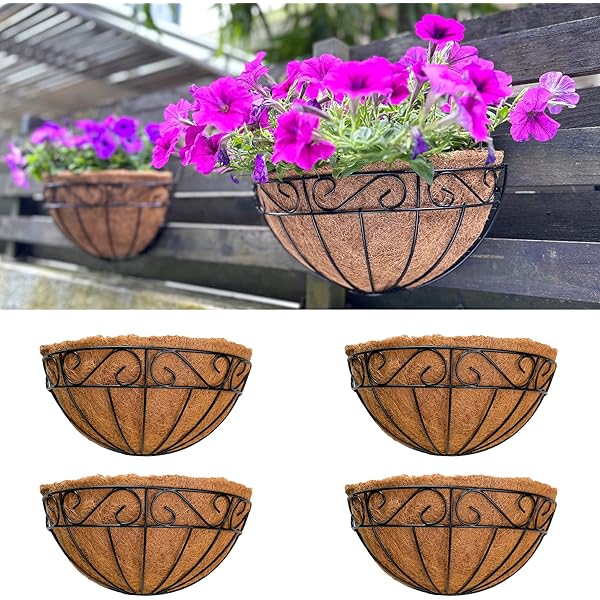 Amazon Com Nuptio 4 Pcs Hanging Wall Planter Wall Mounted Planters 14 Inch Wall Hanging Baskets Half Moon Basket Outdoor Hanging Flower Pot With Coco Liners For Planters Hanging Baskets For Plants Outdoor